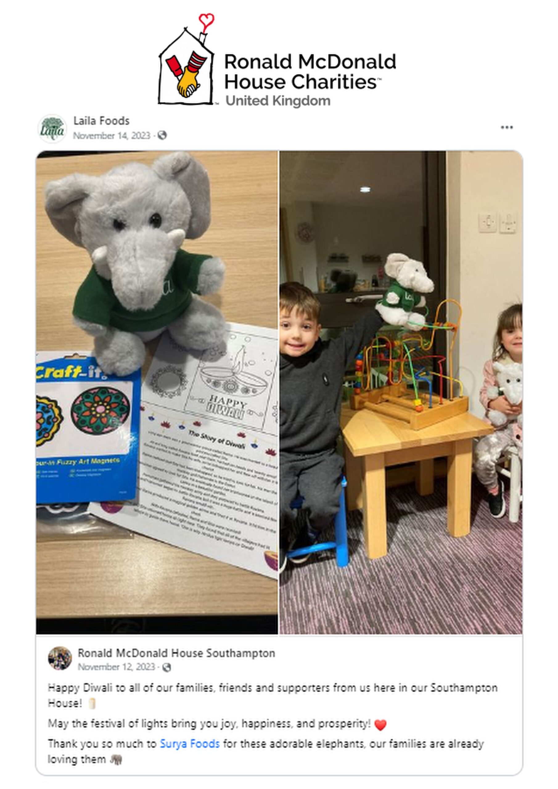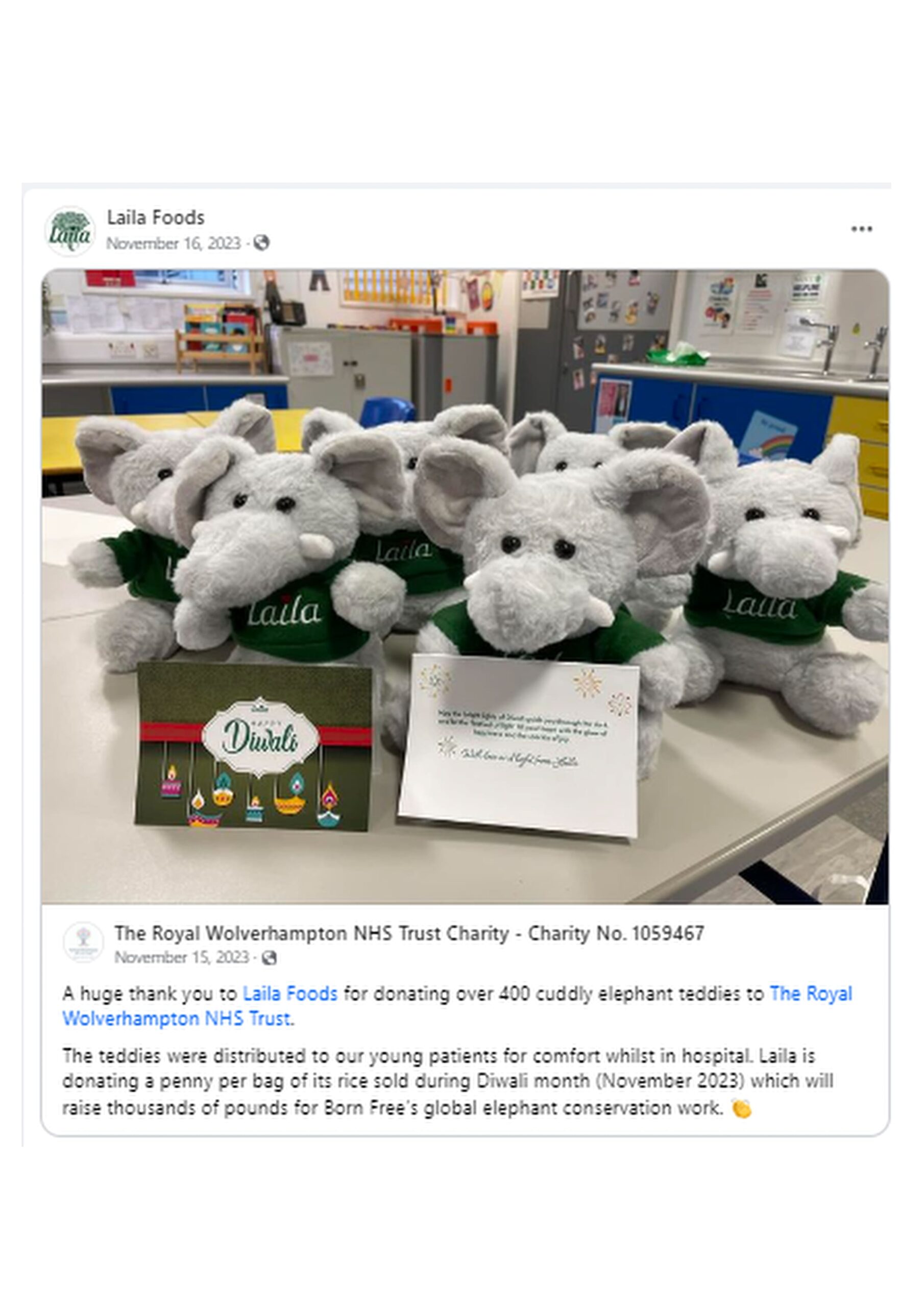 For the partnership Laila created two elephant themed gifts for its 2022 Diwali campaign including a golden foil wrapped hollow chocolate elephant, made with Rainforest Alliance Certified cocoa, and a Laila elephant soft toy (produced using eco-friendly Post-Consumer Recycled Polyester.)